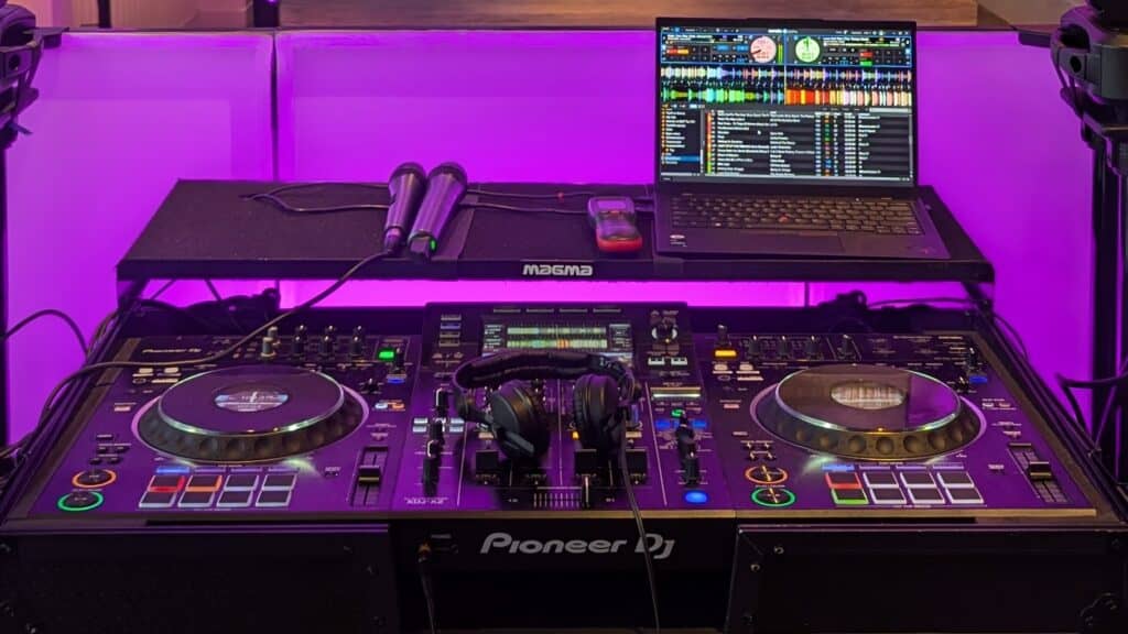Je kunt er ook voor kiezen om alleen mij als DJ in te huren (wanneer de licht- en geluidsapparatuur op locatie al geregeld is), in dat geval neem ik mijn DJ gear mee (Pioneer XDJ-XZ DJ set en een Sennheiser draadloze microfoon).